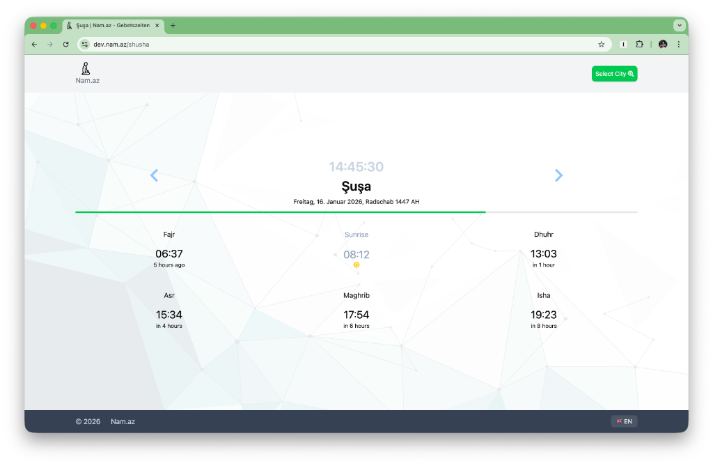 Prayer times for your selected city